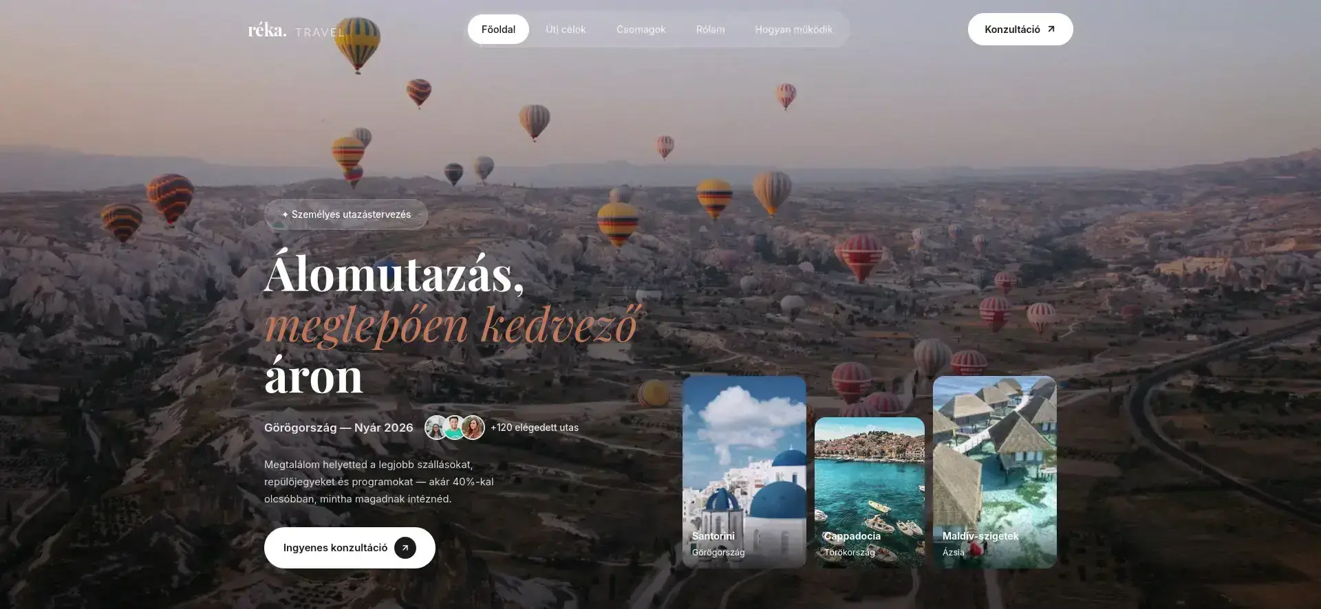 Lenyűgöző úti célok, átlátható árazás és 4 lépéses folyamat — hogy a látogatóból percek alatt érdeklődő legyen.