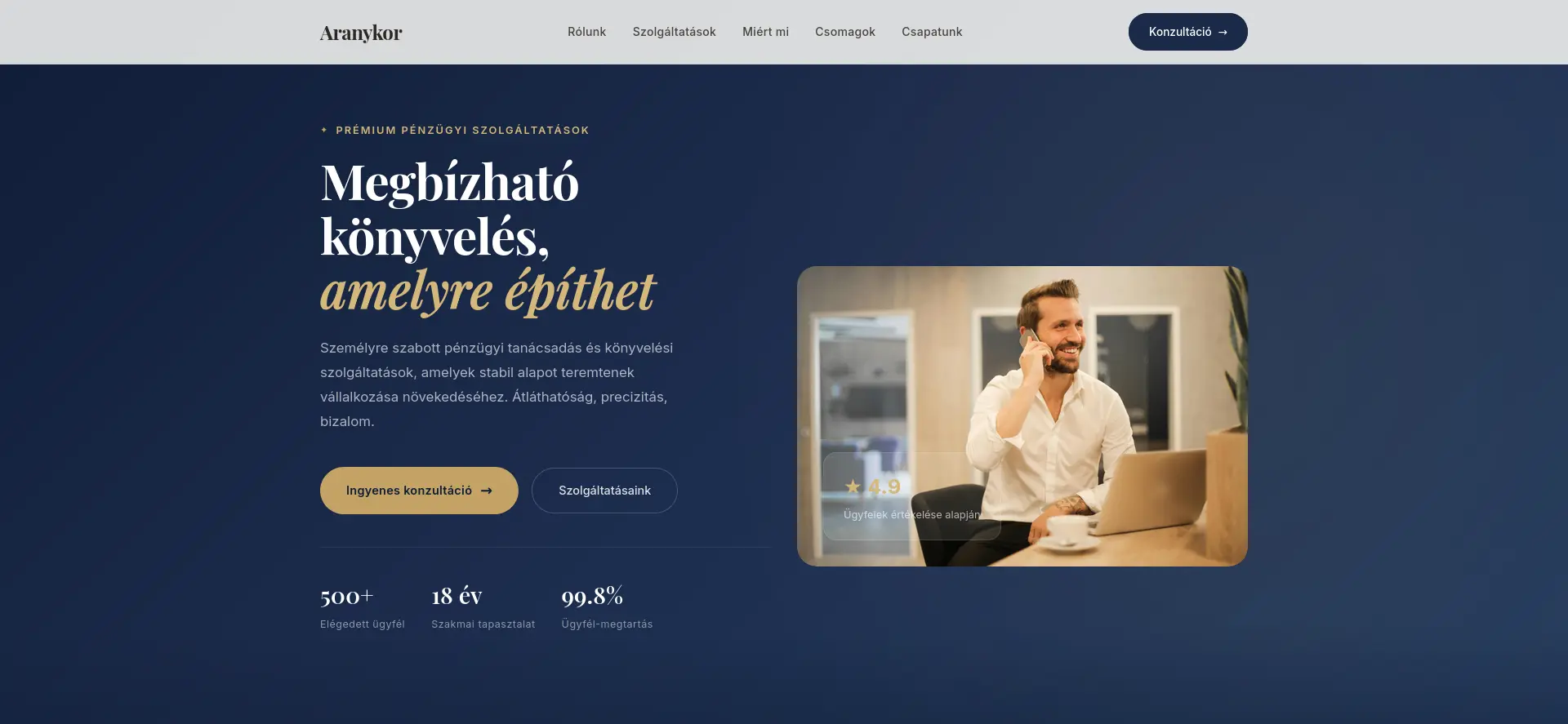 Prémium minőségre, ami nem tűnik „kisvállalkozós”-nak. Modern design, gyors betöltés, profi felépítés — a legjobb eszközökkel dolgozunk, hogy az oldalad versenyelőnyt adjon.