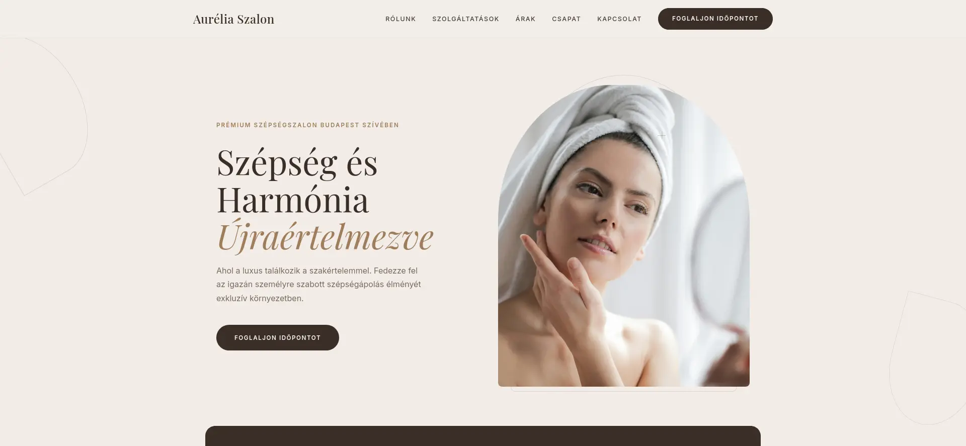 A szalon hangulata és szakértelme egy weboldalba sűrítve — hogy az új vendég már azelőtt bízzon, mielőtt belépne az ajtón.